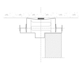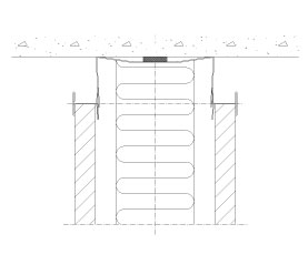 Vandret snit Flexica. Vægafslutning i 100 mm gipsvæg. Afslutning med dækkappe i stål.