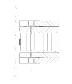 Vertical section Flexica. 100 mm wall. Joint between double glass module and wooden door frame.